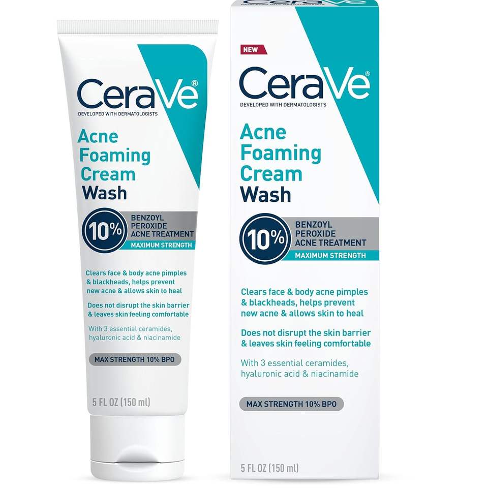 โฟมล้างหน้าและผิวกายสูตรรักษาสิว 100% ผสมเบนโซอิลเปอร์ออกไซด์ 10% พร้อมไฮยาลูรอนิค แอซิด และไนอะซินาไมด์