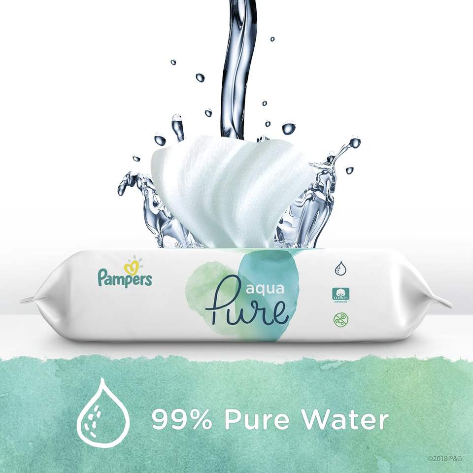 ผ้าเช็ดทำความสะอาดเด็กอ่อน Aqua Pure สำหรับขายส่ง 100% น้ำบริสุทธิ์ 99% ปราศจากสารก่อภูมิแพ้ ไม่มีน้ำหอม ผลิตจากผ้าไม่ถักทอ สำหรับดูแลผิวทารก