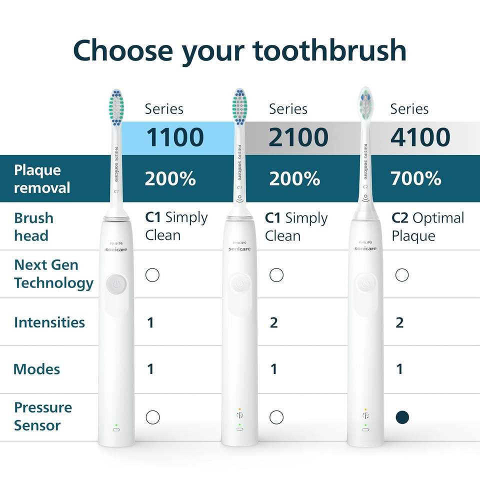 สำหรับแปรงสีฟันไฟฟ้าแบบชาร์จได้ซีรีส์ 1100 เทคโนโลยีโซนิคขั้นสูงอีซี่สตาร์ท สมาร์ทไทม์เมอร์ ควอดเพเซอร์สีขาว IPX6/IPX7