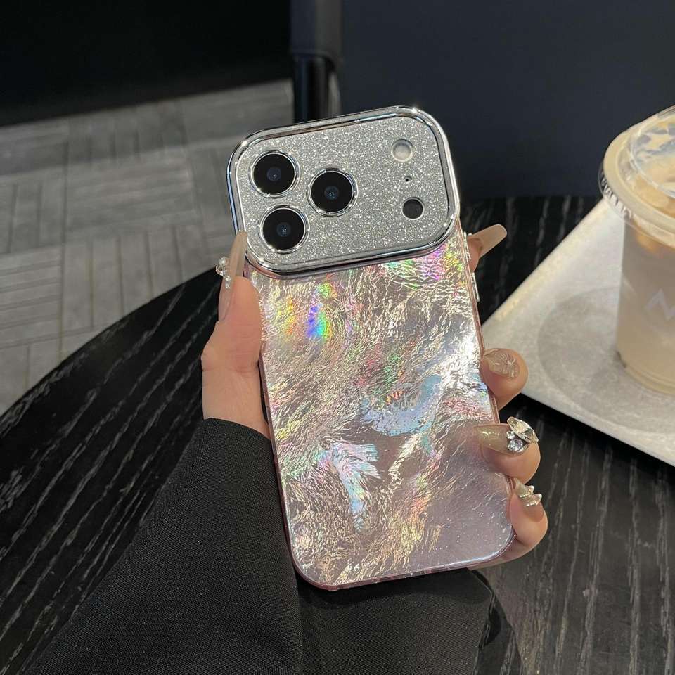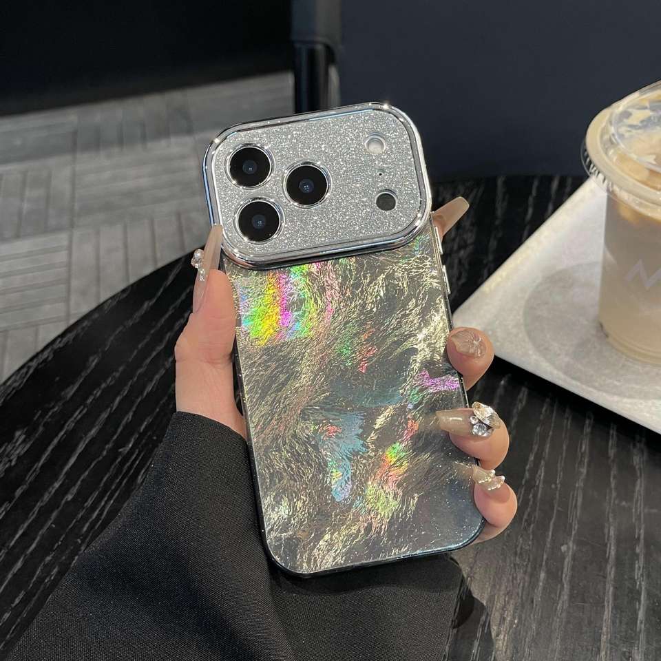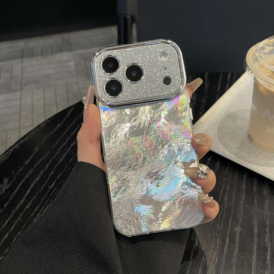 เคสอะคริลิคสำหรับ 17 Pro Max ดีไซน์ธุรกิจ พร้อมเลนส์กลิตเตอร์ ลายไล่สีเลเซอร์ ฟอยล์ หน้าต่างขนาดใหญ่ ป้องกันการกระแทก