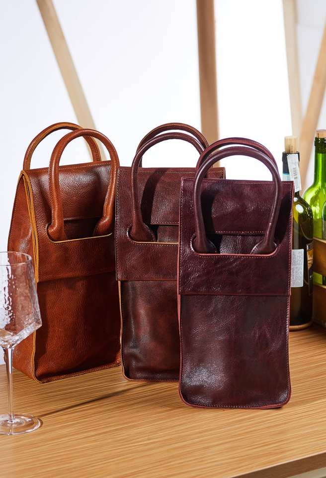 กระเป๋าใส่ขวดหนังสำหรับใส่ไวน์และวิสกี้2ขวดกระเป๋าใส่ไวน์ที่มีด้ามจับและที่แบ่งด้านใน LEB-0007B
