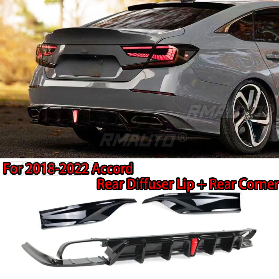 ดิฟฟิวเซอร์กันชนหลัง Yofer V2 สำหรับ Honda Accord รุ่นที่ 10 และ 10.5 ปี 2018-2022 พร้อมลิ้นกันชนหลังและสปอยเลอร์มุม สีดำเงา ลายคาร์บอนไฟเบอร์