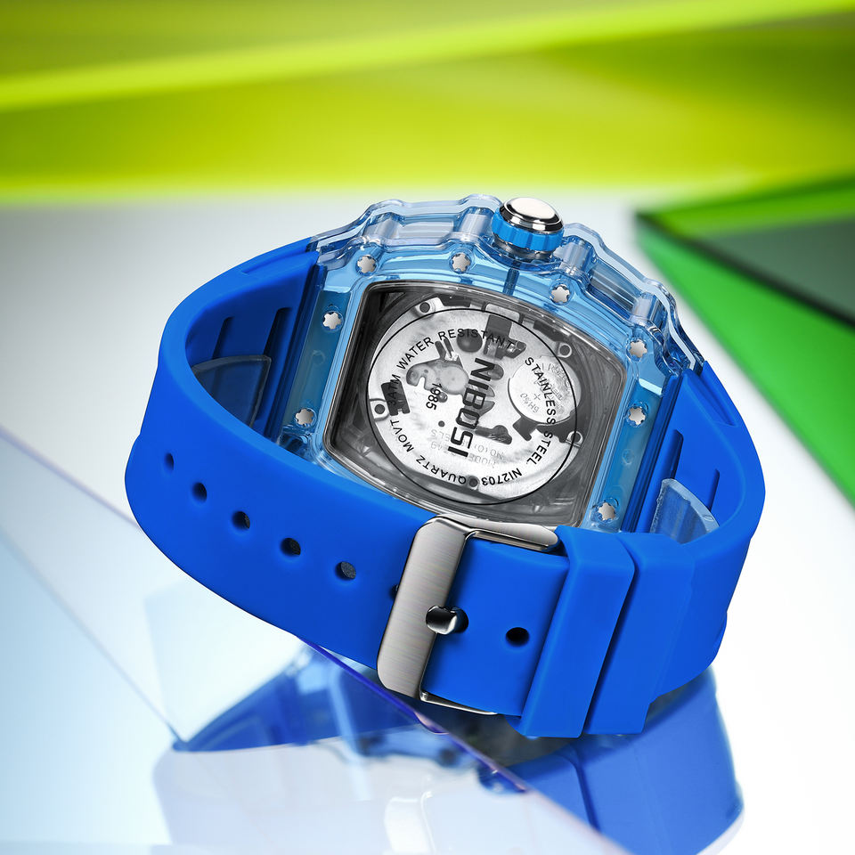 นาฬิกาควอตซ์ผู้ชาย รุ่น 2703 สำหรับธุรกิจและหรูหรา ขนาด 44 มม. หน้าปัดทรง Tonneau โปร่งใส กันน้ำ เหมาะสำหรับเล่นกีฬาและกิจกรรมกลางแจ้ง