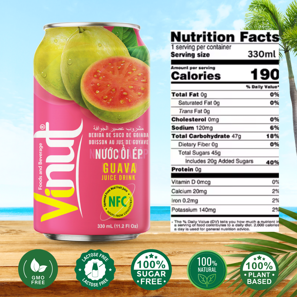 เครื่องดื่มผลไม้และผักเพื่อสุขภาพ ขนาด 330 มล. น้ำฝรั่งรสสดใหม่ ชนิดน้ำผลไม้เข้มข้น อายุการเก็บรักษา 24 เดือน