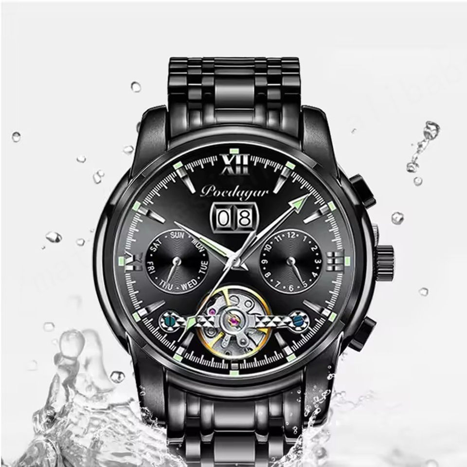 นาฬิกาข้อมือผู้ชายแฟชั่นธุรกิจ รุ่น 8051 ขายดี กันน้ำ ระบบอัตโนมัติ กลไกจักรกล หน้าปัดกระจก พร้อมฟังก์ชั่นโครโนกราฟ สายสแตนเลส