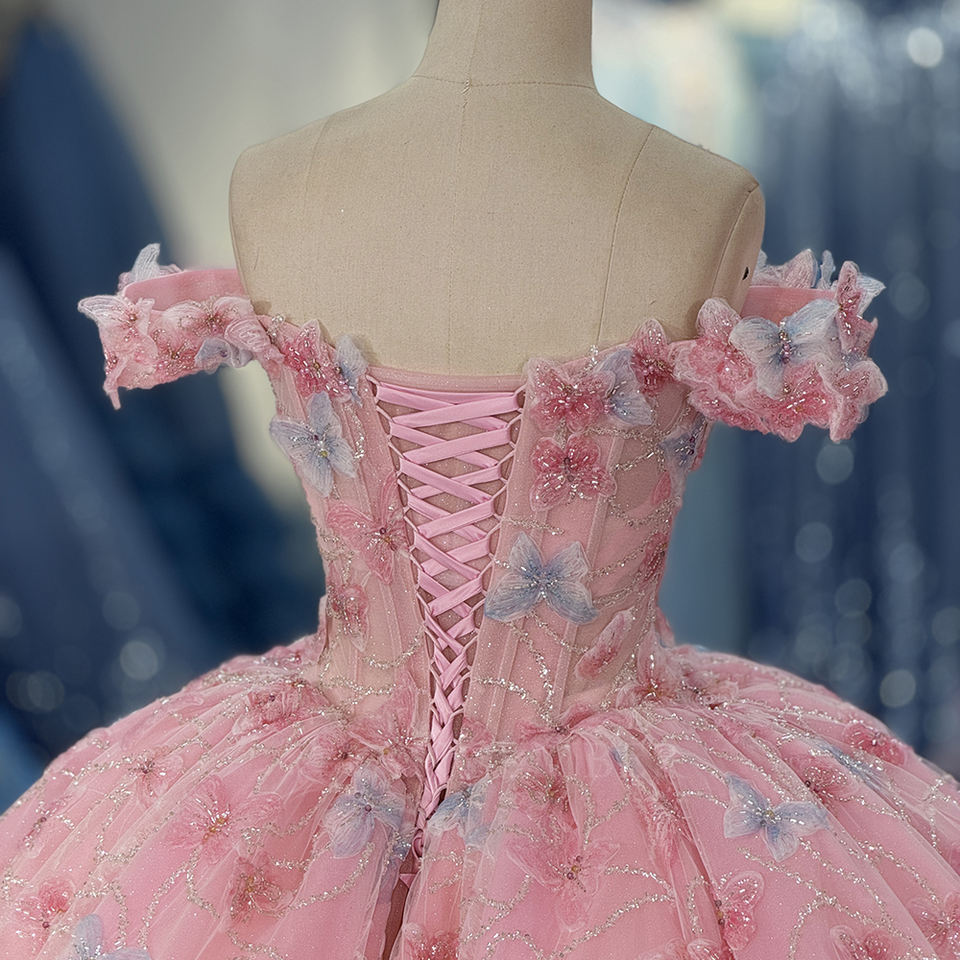 เลื่อมสีชมพูสำหรับเจ้าหญิง8501หวานปักเลื่อมยาว16สาว XV quinceanera