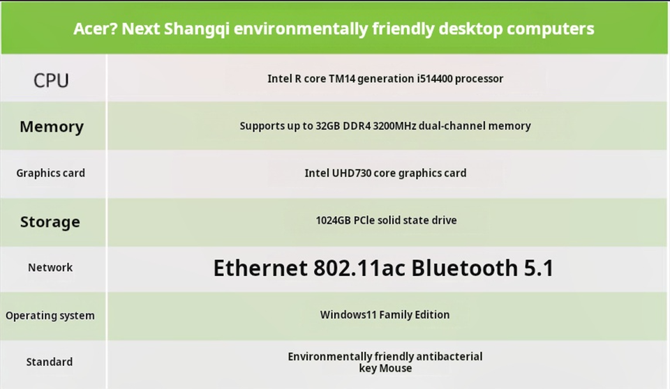 สำหรับ ACER Trumpchi X4270 24รุ่นใหม่14th รุ่น I5-14400คอมพิวเตอร์ตั้งโต๊ะ