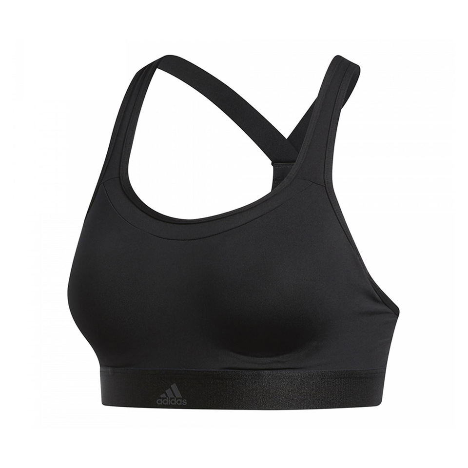 ADIDAS ชุดสปอร์ตบราสำหรับผู้หญิง Adidas แข็งแกร่งสำหรับนักแข่งกีฬาสีดำพิมพ์ลายยืดหยุ่นปานกลางสำหรับใส่เล่นโยคะ