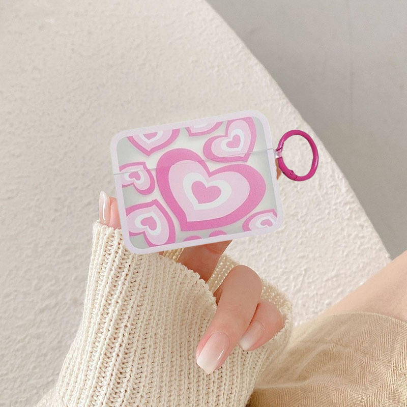 เคสแข็งสี่เหลี่ยมลายหัวใจสีชมพูกันกระแทกทั้งตัวป้องกันรอยขีดข่วนสำหรับ airpods 1/2/3/4 /pro