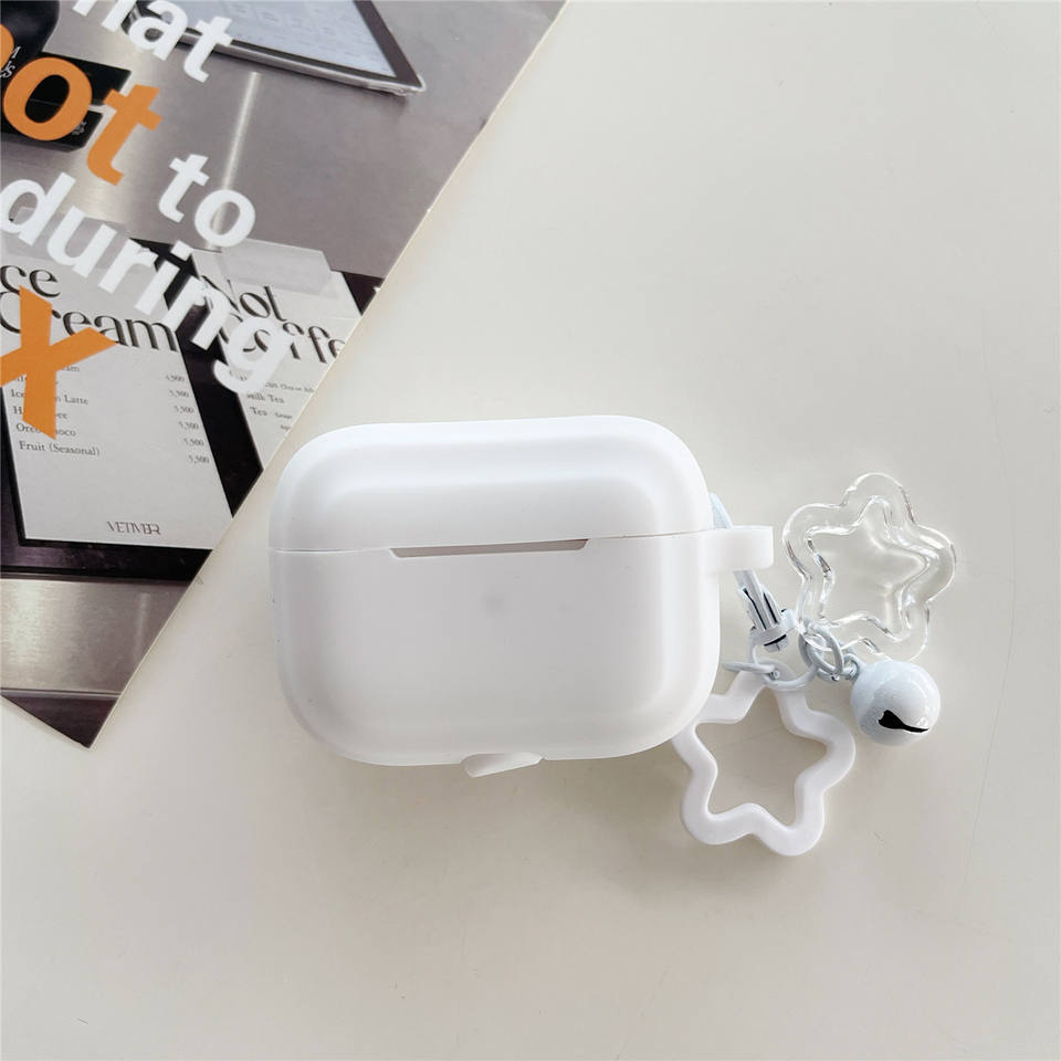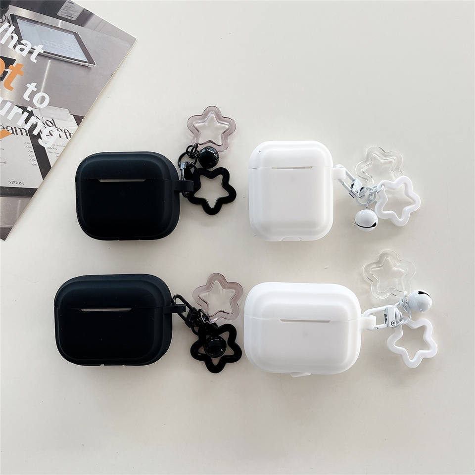 เคสซิลิโคนสีทึบพร้อมจี้รูปดาวกระดิ่งดีไซน์น่ารักฝาครอบป้องกันแบบนุ่มสำหรับ airpods 1/2/3 /pro