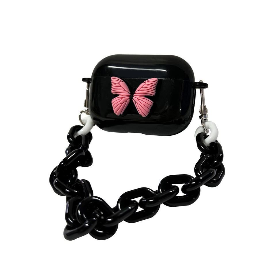 ชื่อผลิตภัณฑ์:เคสหูฟังนิ่มลายผีเสื้อสีดำสีชมพู