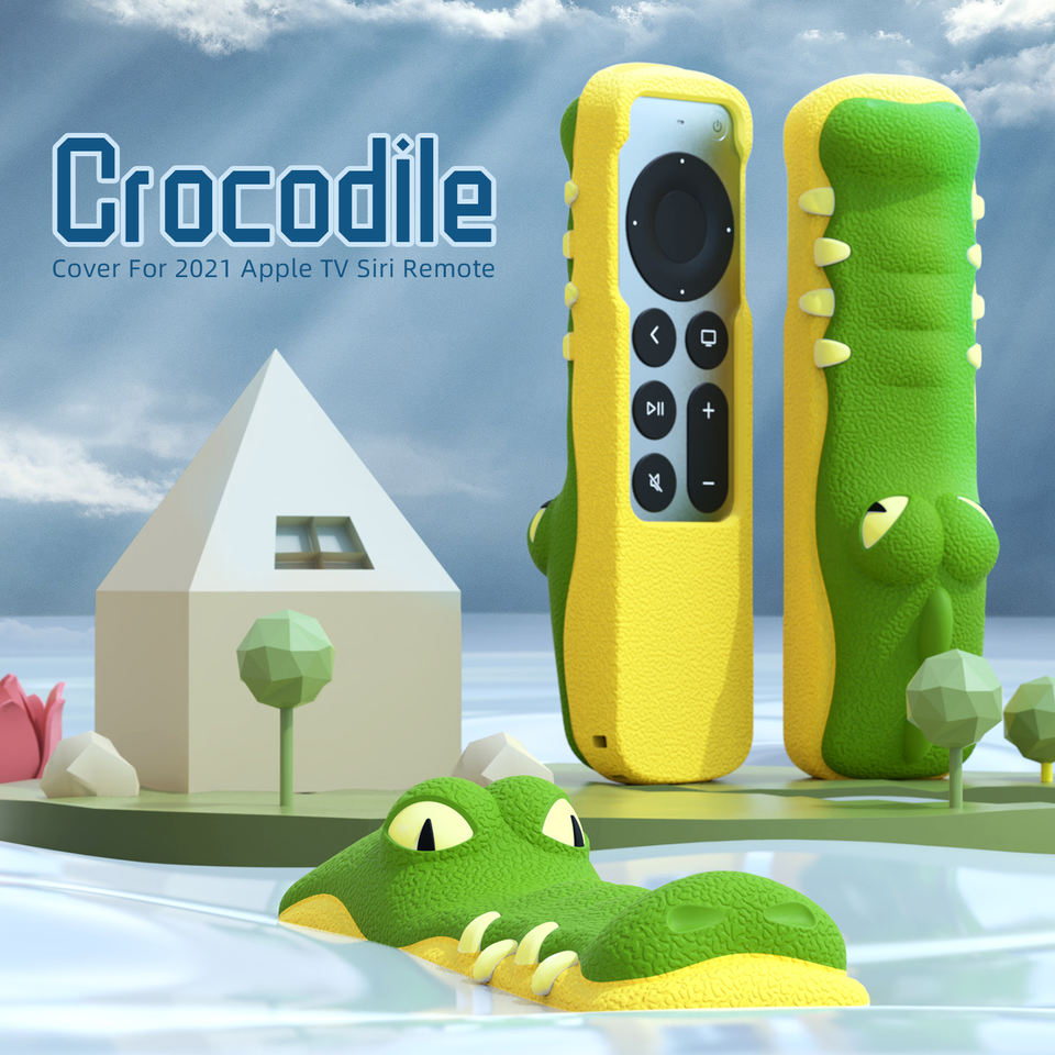 เคสสำหรับรีโมท Apple TV 4K Siri รุ่นที่ 2/3 ลายการ์ตูนจระเข้ ป้องกันการกระแทก ทำจากซิลิโคน พร้อมสายคล้อง