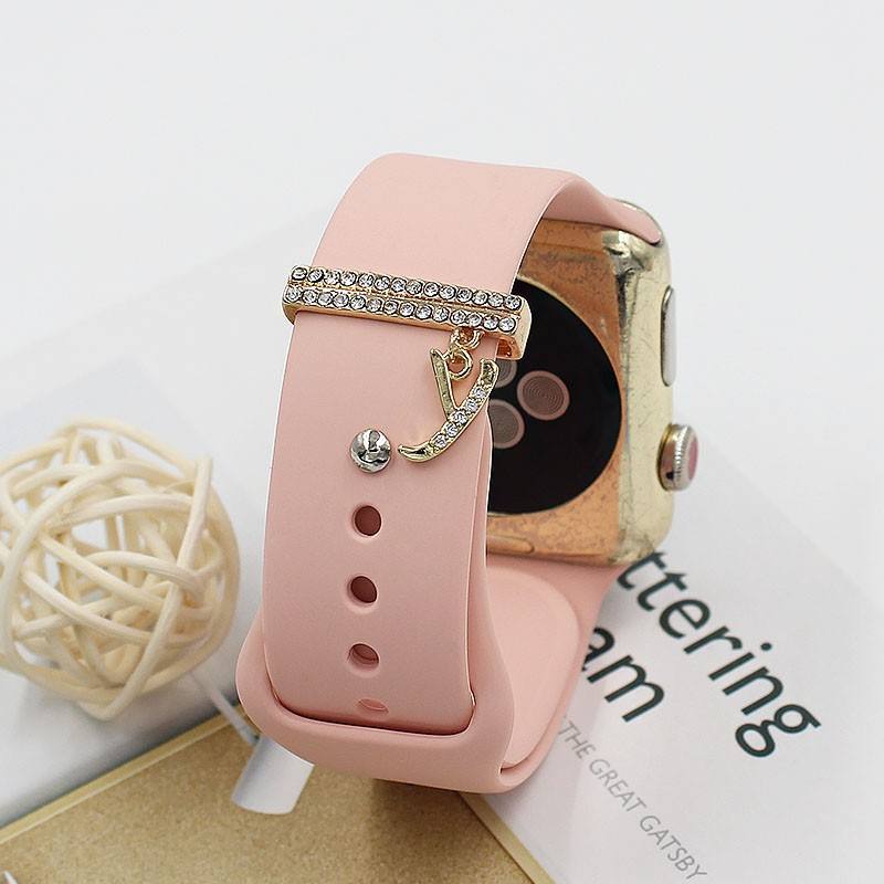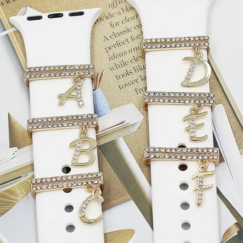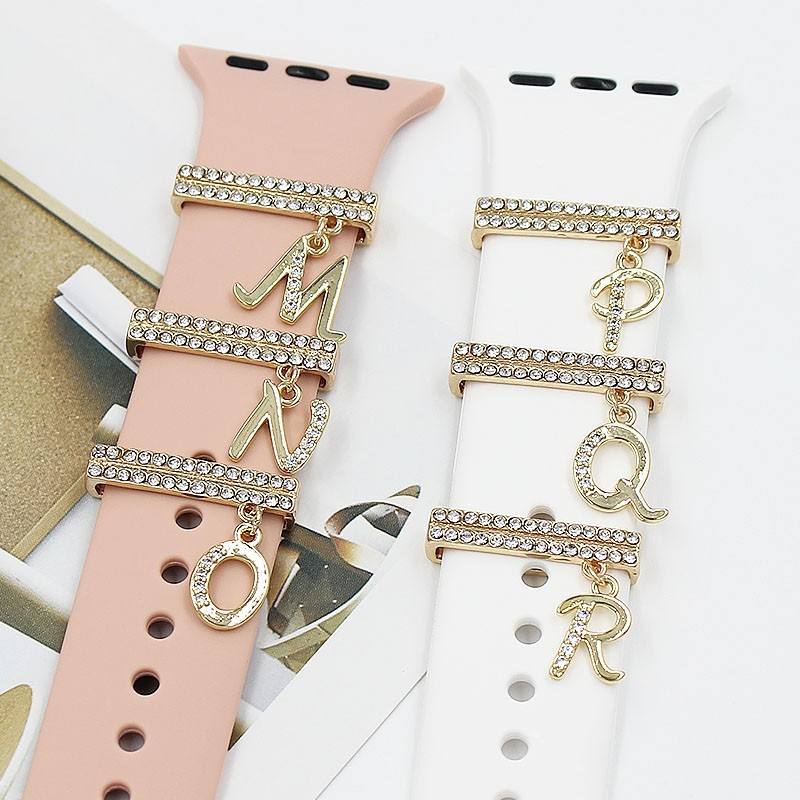 สำหรับแอปเปิ้ลวอทช์ตกแต่งแหวนเพชรเครื่องประดับนาฬิกาสมาร์ทวอทช์สายซิลิโคนอุปกรณ์เสริมเครื่องประดับโลหะตัวอักษรภาษาอังกฤษ26