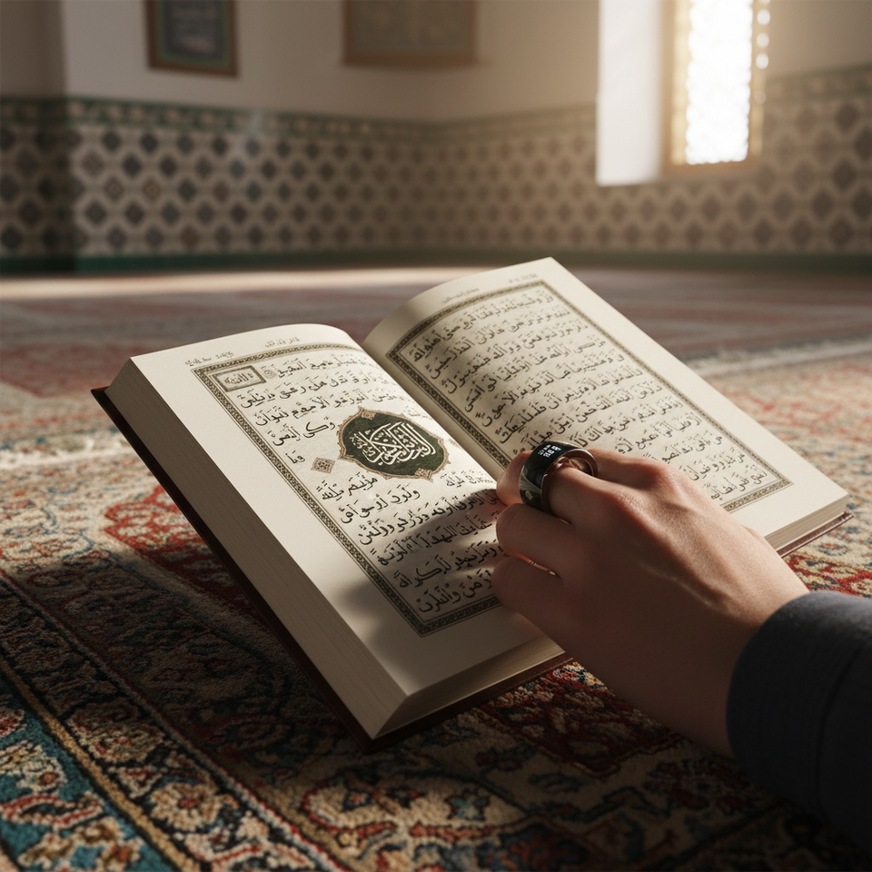 แหวนอัจฉริยะสำหรับนับการอ่านดิกร์ภาษาอาหรับสำหรับชาวมุสลิม - ของขวัญวันอีด เตือนเวลาละหมาด 5 เวลา ผลิตจากสแตนเลส ควบคุมผ่านแอปพลิเคชัน หน้าจอ OLED