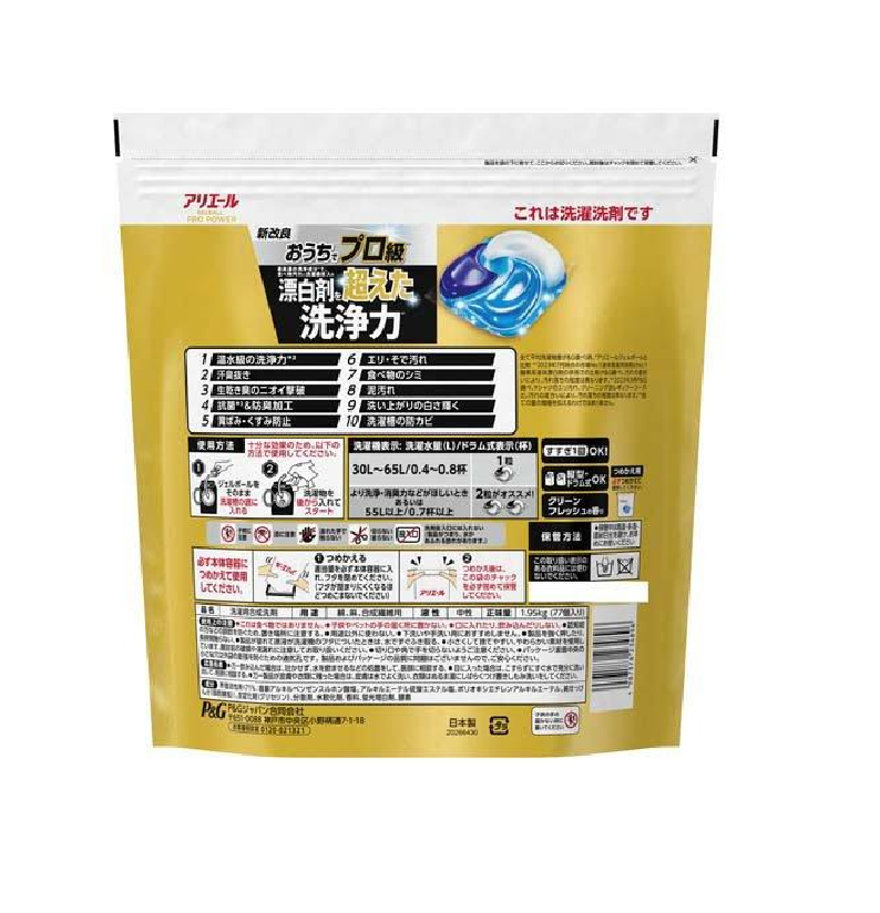 Product name:Ariel Gel Ball Pro Power 77 pieces 4 Packs Refill