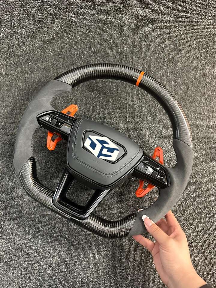 พวงมาลัยคาร์บอนไฟเบอร์หุ้มหนังอัลคันทาร่า สำหรับรถยนต์ออดี้ ซีรีส์ Q รุ่นใหม่ Q2 Q3 Q5 Q7 Q8 A6 รุ่นสปอร์ต ตกแต่งแบบกำหนดเองได้