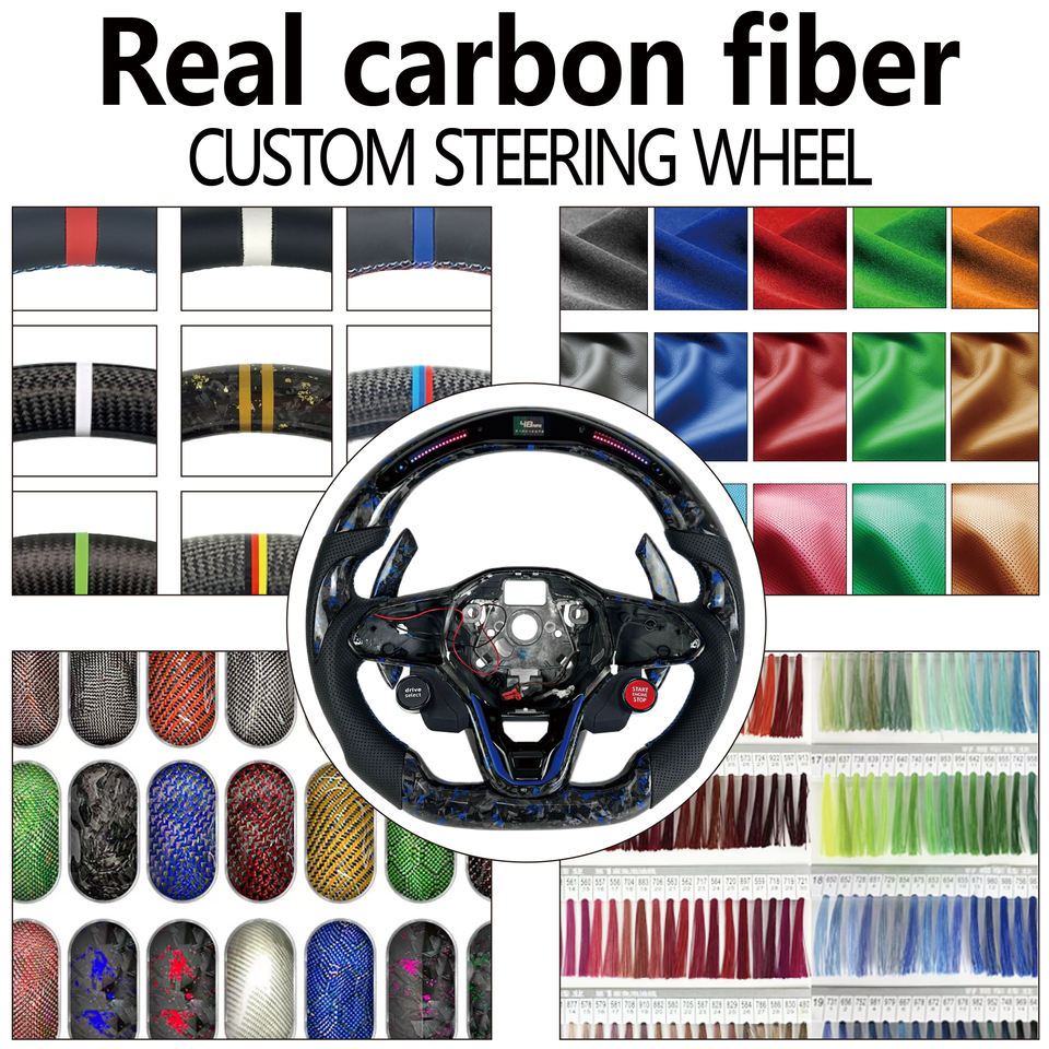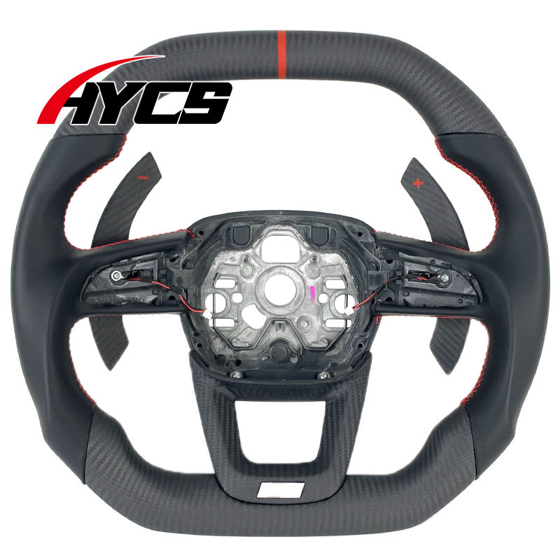 พวงมาลัยคาร์บอนไฟเบอร์แบบด้านสั่งทำพิเศษสำหรับ Audi Q S RS Series S3 Q3 Q5 Q8 Q7 SQ5 RS3 S5 RS5 ปี 2016-2024 ตกแต่งภายในสไตล์สปอร์ต