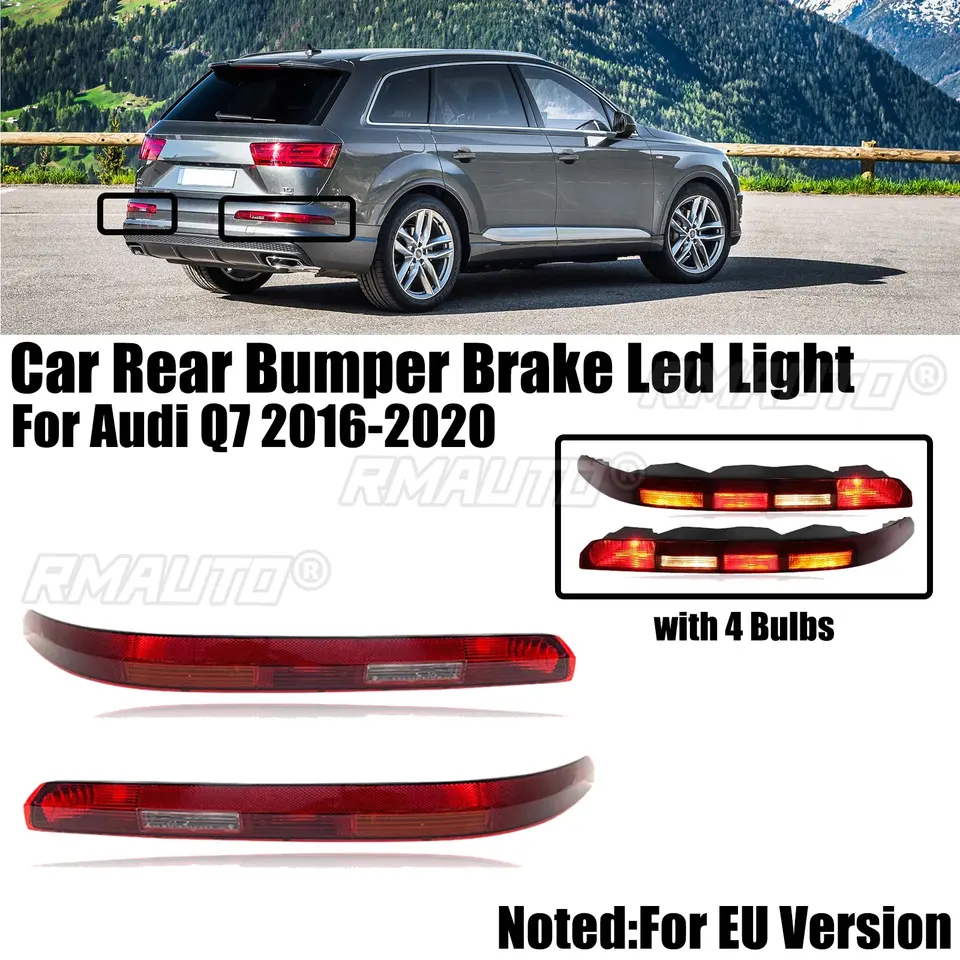 ไฟเบรก LED สำหรับกันชนหลังรถยนต์ Audi Q7 ปี 2016-2020 รุ่น US/EU พร้อมไฟเลี้ยวและไฟหยุด 4 หลอด ไฟสะท้อนแสงท้ายล่าง