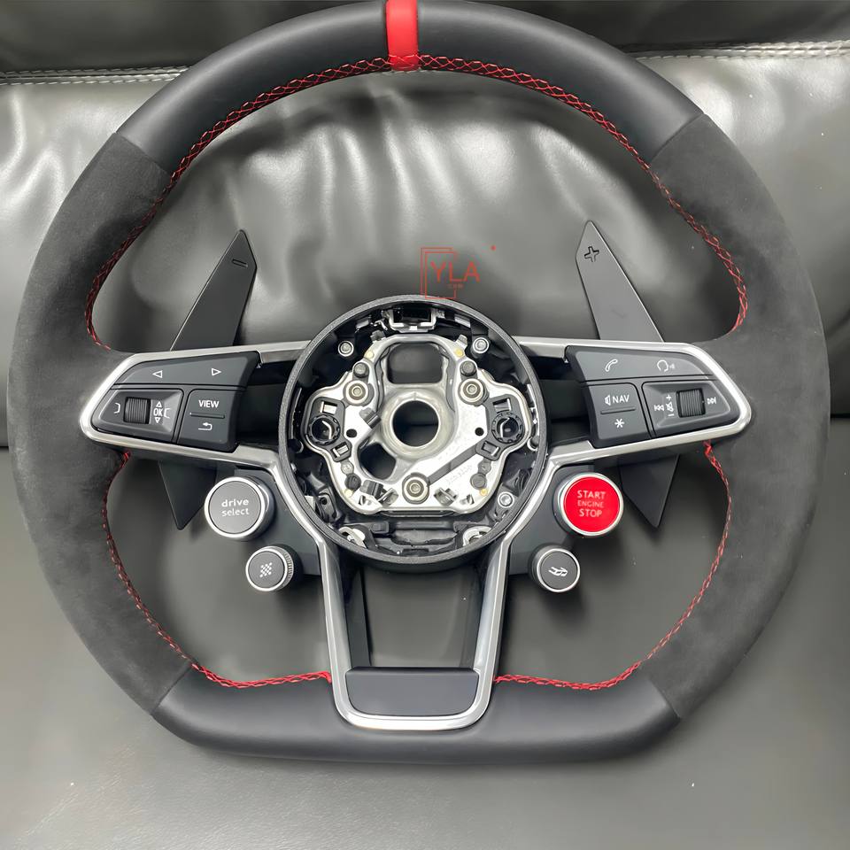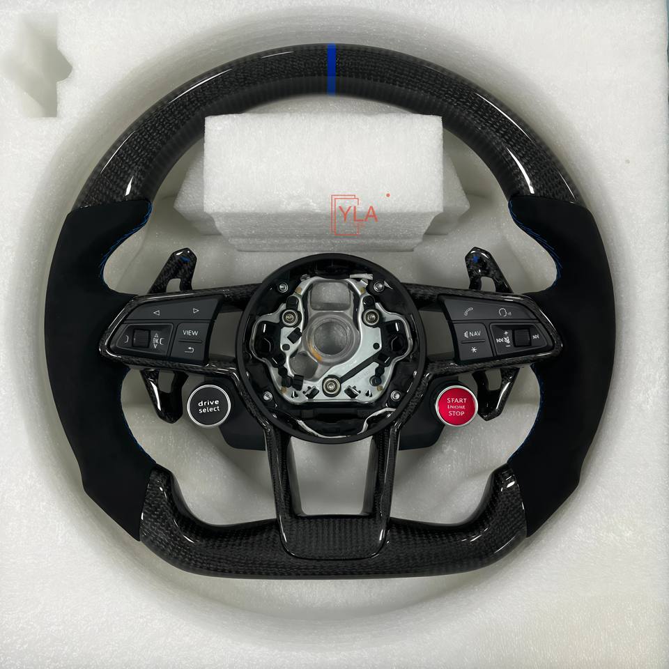 สำหรับ Audi R8 TT Mk2 Mk3 B8 RS TTS ttrs RS3 RS6 RS4 RS7 RS5 Q3 A3 D3 A4 Q7 A5 C6 A7 A8 A1 Q5พวงมาลัยรถยนต์คาร์บอนไฟเบอร์