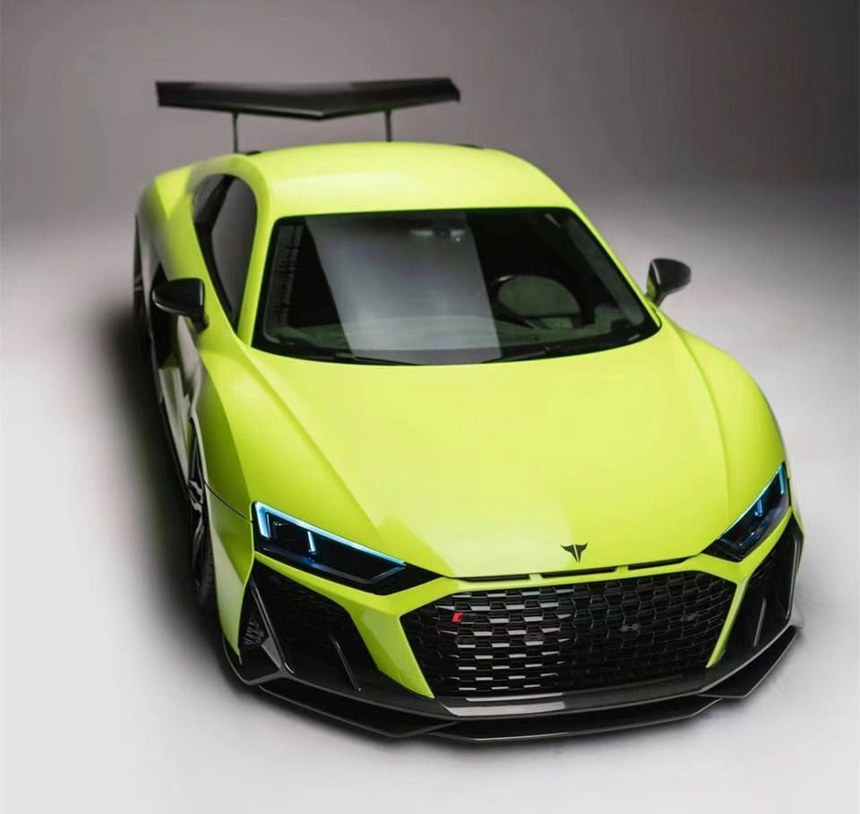 ชุดแต่งคาร์บอนไฟเบอร์สไตล์ Capristo สำหรับอัพเกรด Audi R8 ประกอบด้วยลิ้นกันชนหน้าแบบใหม่ ดิฟฟิวเซอร์ สปอยเลอร์ สเกิร์ตข้าง และกันชนรถยนต์