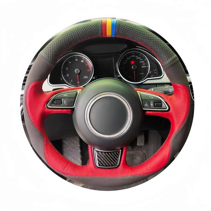 ที่หุ้มพวงมาลัยหนังนิ่มหนังแท้สำหรับรถ Audi S3 8V, ที่ B8 S4 8X SQ5 S1หนังแท้แบบทำมือ S5 S6 8T G8 S7 C7 Q3