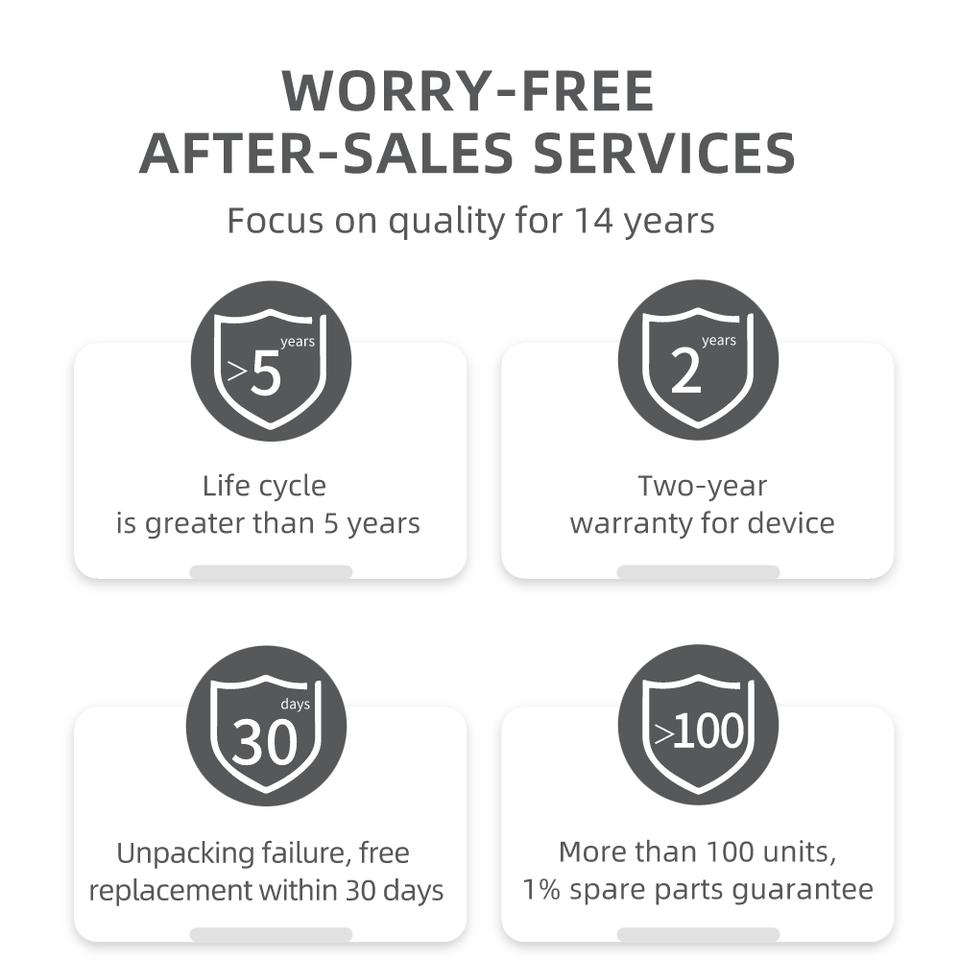 บริการหลังการขาย:Call Center และ on-line การวิเคราะห์สนับสนุน, โรงแรมการฝึกอบรมและตรวจสอบ, อะไหล่ฟรี, สุทธิและเปลี่ยน, ซ่อม