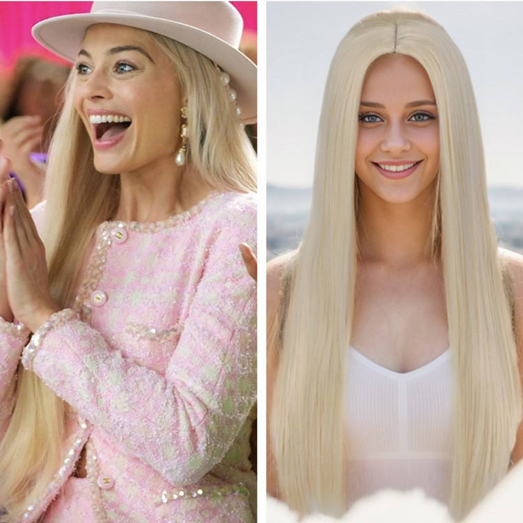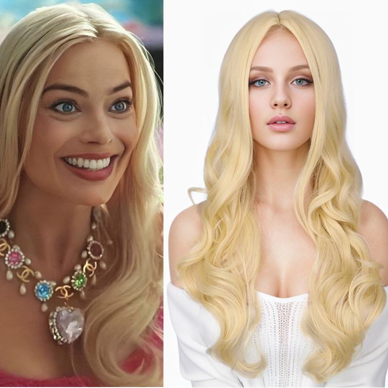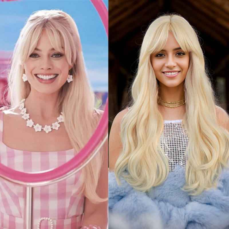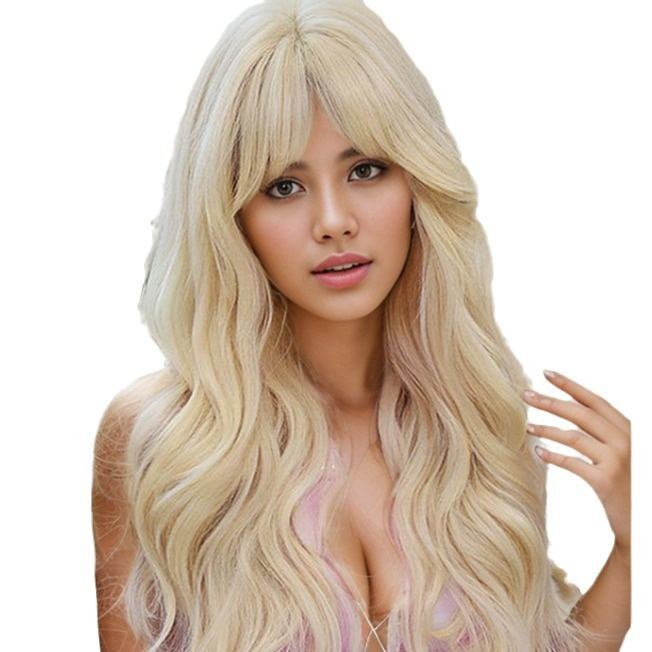 วิกผมคอสเพลย์สีบลอนด์อ่อนสำหรับผู้หญิงหมวกแก๊ปเล็กผมลอนยาวผมสังเคราะห์สำหรับผมกลาง