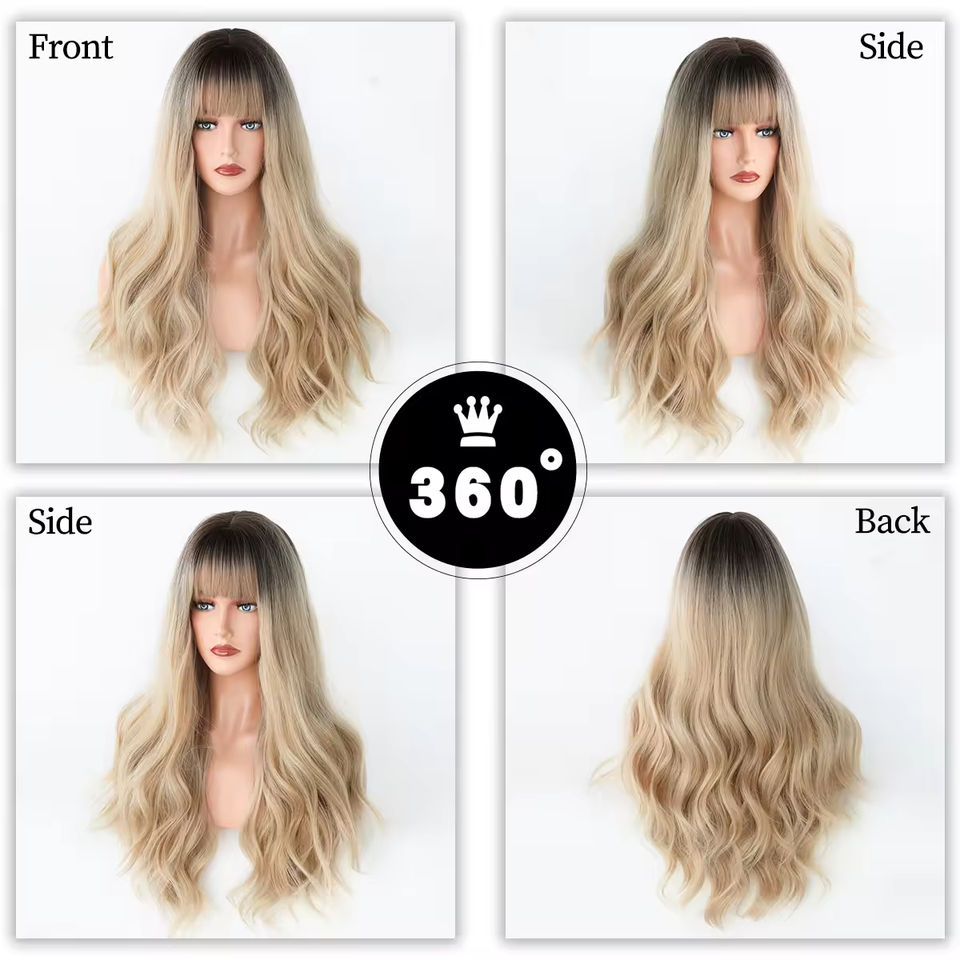 วิกผมยาวสีบลอนด์แบบลอนคลื่นสำหรับผู้หญิง คอสเพลย์ เส้นใยทนความร้อนสูง ดูเป็นธรรมชาติ