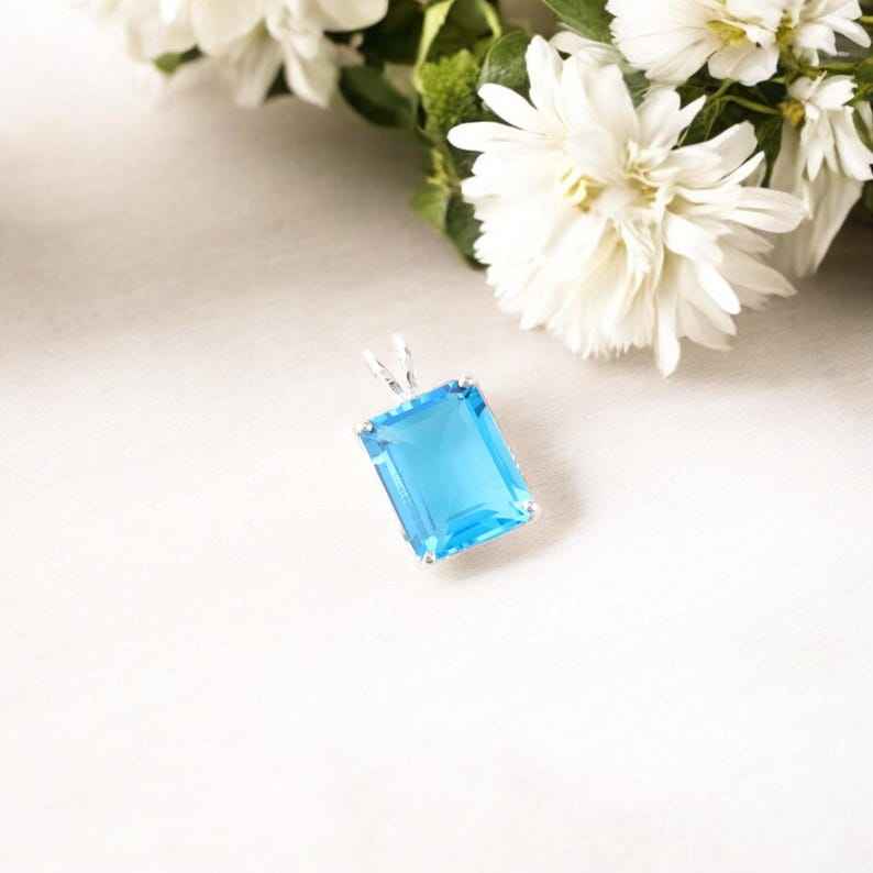 จี้เงินแท้ 925 ประดับพลอยบลูโทแพซทรงสี่เหลี่ยมผืนผ้า สำหรับผู้หญิง คลาสสิก ได้รับการรับรองจาก IGI ของขวัญประจำเดือนธันวาคม