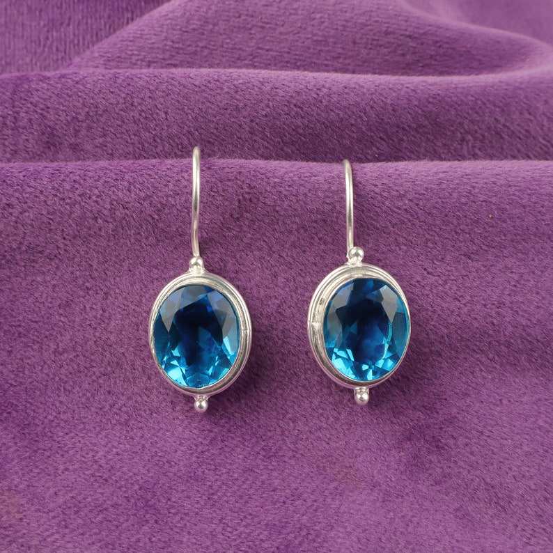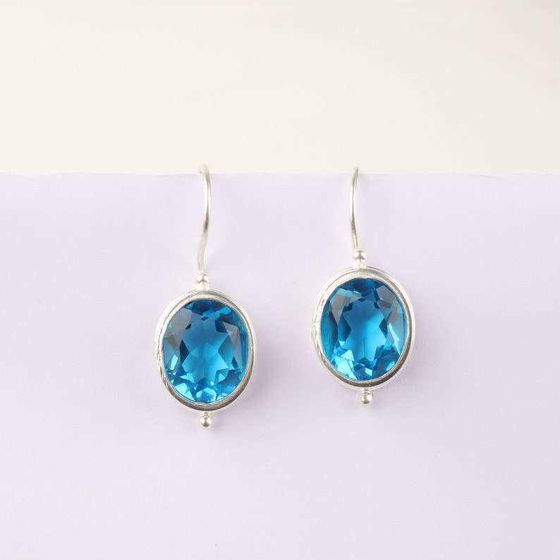 ต่างหูบลูโทแพซทรงรี เงินสเตอร์ลิง ชุบทอง ได้รับการรับรองจาก IGI ของขวัญสุดหรูสำหรับผู้หญิงในโอกาสวันครบรอบหรืองานปาร์ตี้