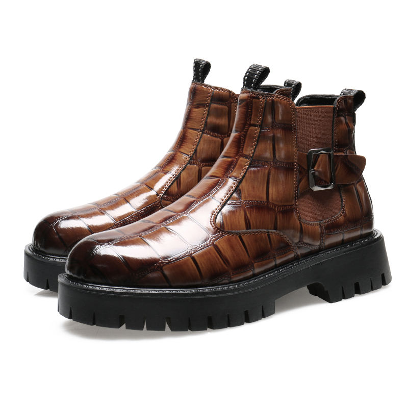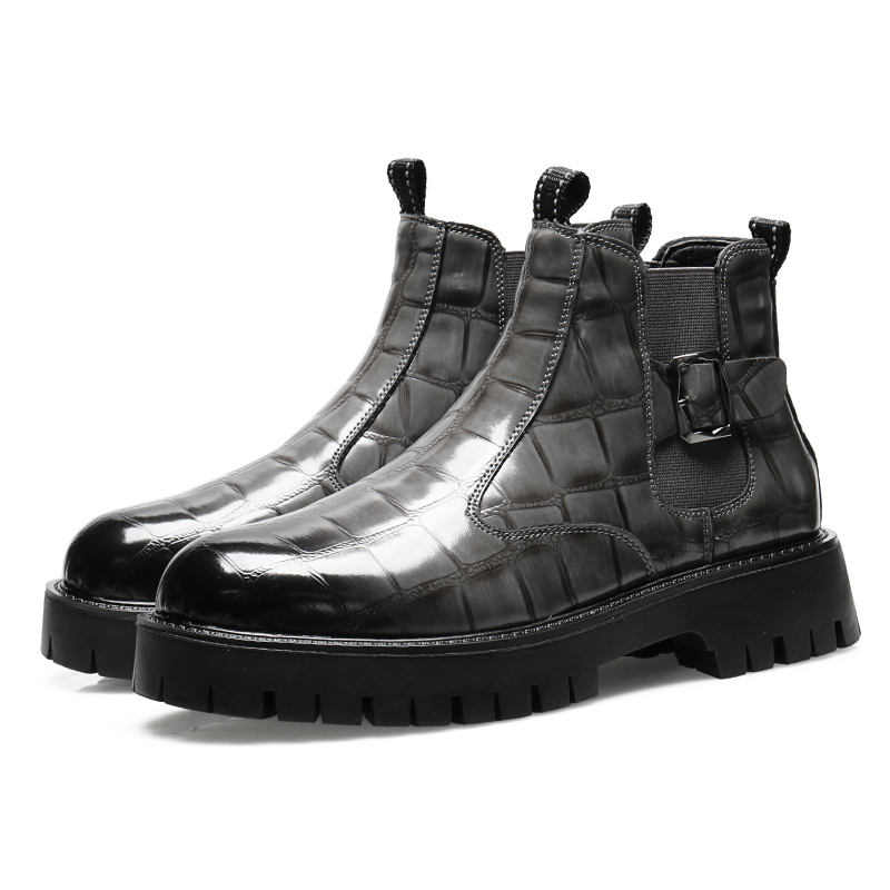 รองเท้าบูทผู้ชายแบบทนทาน สไตล์อังกฤษ รองเท้าบูทหุ้มข้อและรองเท้าบูทแบบวินเทจ ทำจากหนัง PU สวมใส่ได้ทุกฤดู