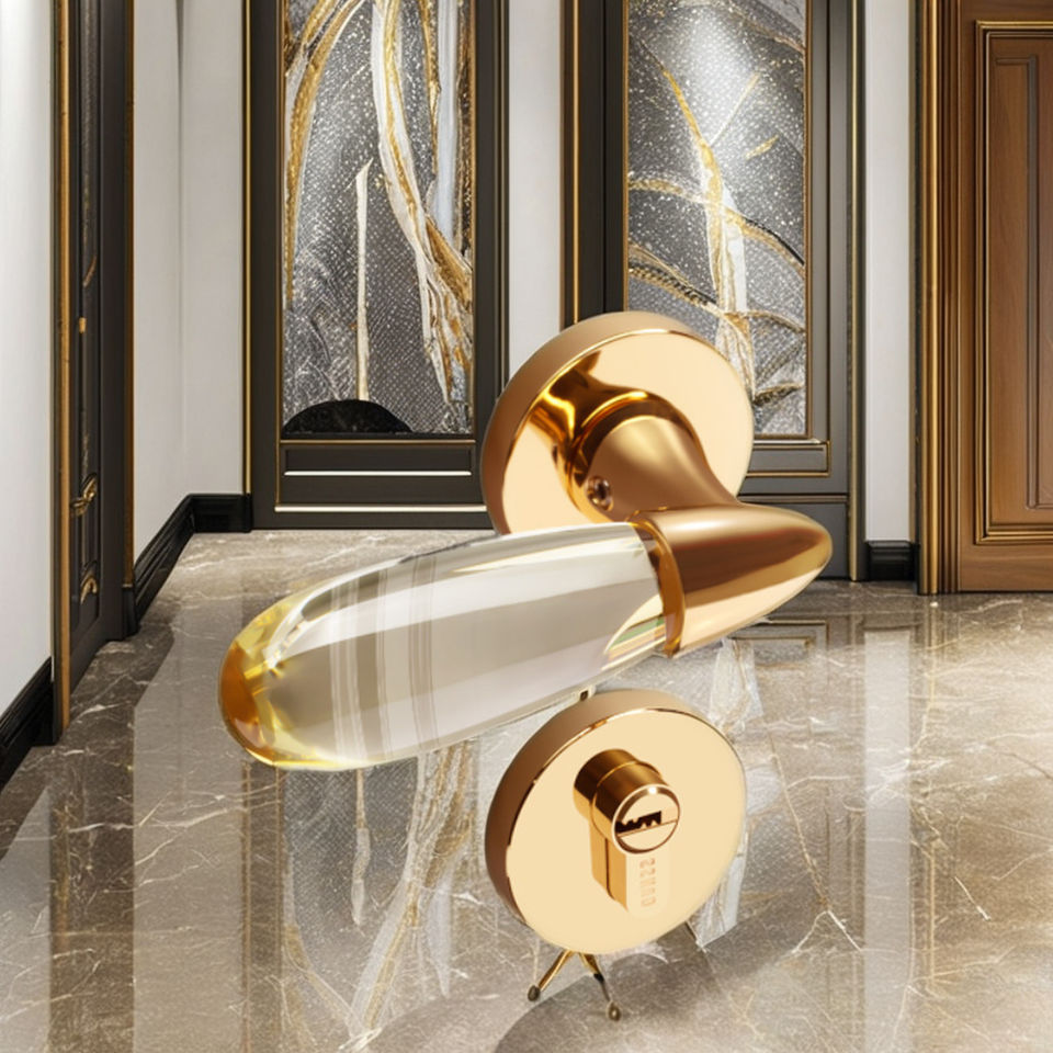 ไฟสีทองสว่างมือจับประตูหรูหราบ้านโบราณสีเหลืองห่านมือจับประตูแม่เหล็กสังกะสีแบบเรียบง่ายทันสมัยและเงียบสงบ