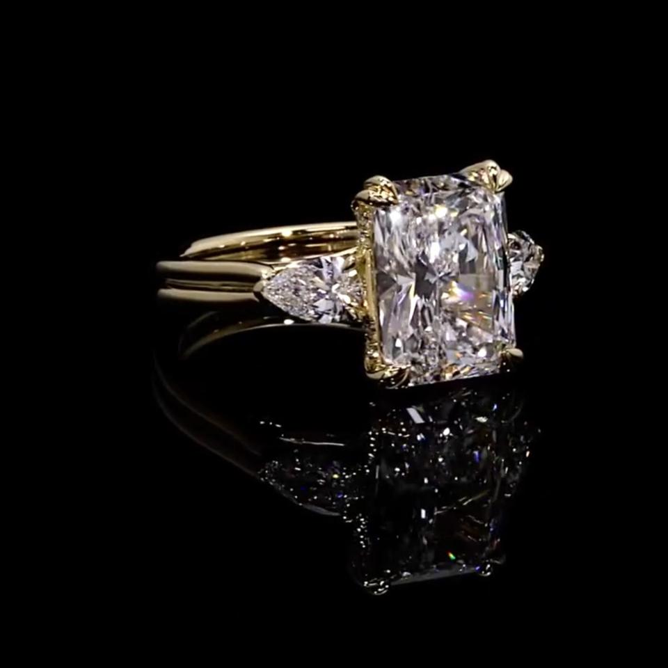 แหวนหมั้นและแหวนแต่งงานเพชรทรงลูกแพร์เจียระไนแบบคลาสสิก ทองคำแท้ 18K พร้อมเพชรแล็บโกรว์สี D ฝังข้าง