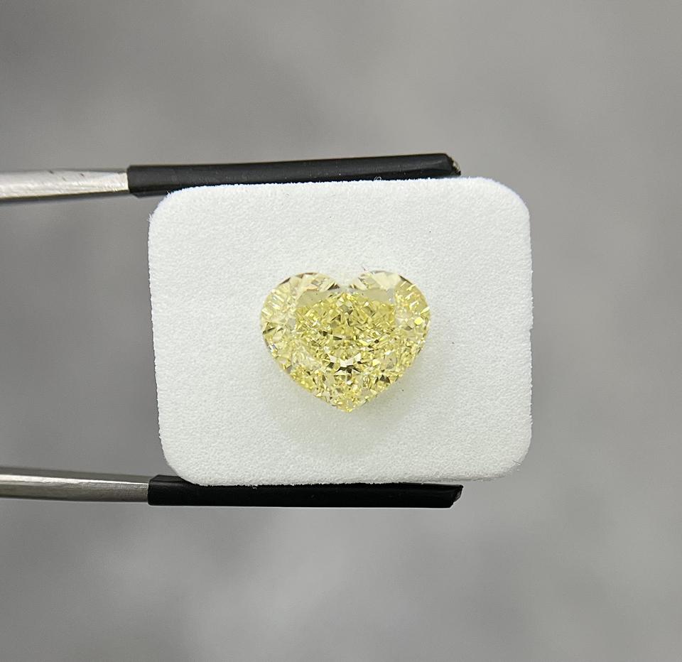 เพชรแท้ธรรมชาติสีเหลืองแฟนซี น้ำหนัก 5.02 กะรัต ความสะอาดระดับ VS2 ทรงหัวใจ ขัดเงา EX สมมาตรภาพ VG สำหรับทำเครื่องประดับ รับผลิตแบบ OEM