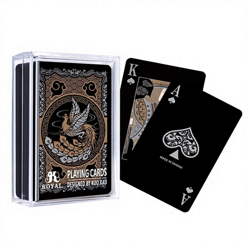 สำหรับไพ่ลายมังกรฟีนิกซ์สไตล์จีน สีดำทอง ทำจากพลาสติก ขนาด 58x88 มม. 54 ใบ สามารถปรับแต่งได้