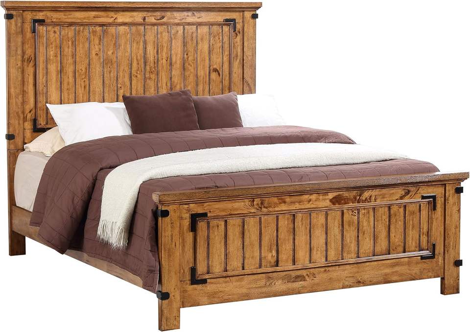 แผงไม้หัวเตียงกรอบหัวเตียงสำหรับรถไฟเหาะบ้านเบรนเนอร์แบบดั้งเดิมน้ำผึ้งชนบทขนาดควีนไซส์ทนทาน