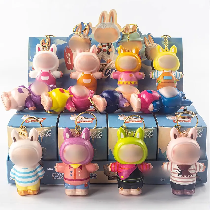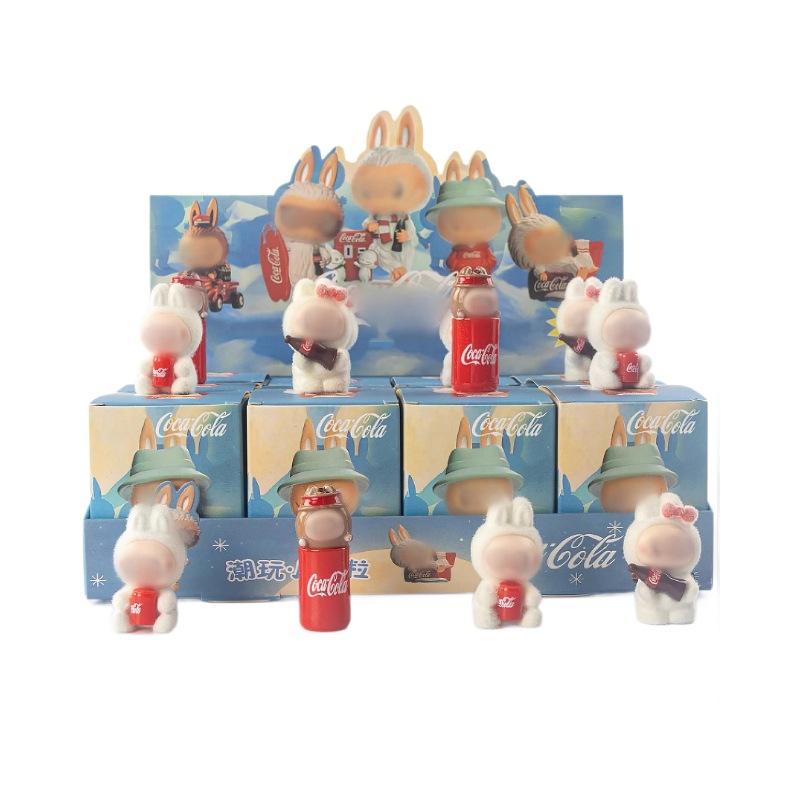 ของเล่นพลาสติกแฟชั่นสำหรับเด็ก ลายโค้ก ผ้าฟล็อกกิ้ง ของตกแต่งเล็กๆ พร้อมกล่องสุ่มและแผงขายของบับเบิ้ลมาร์ท