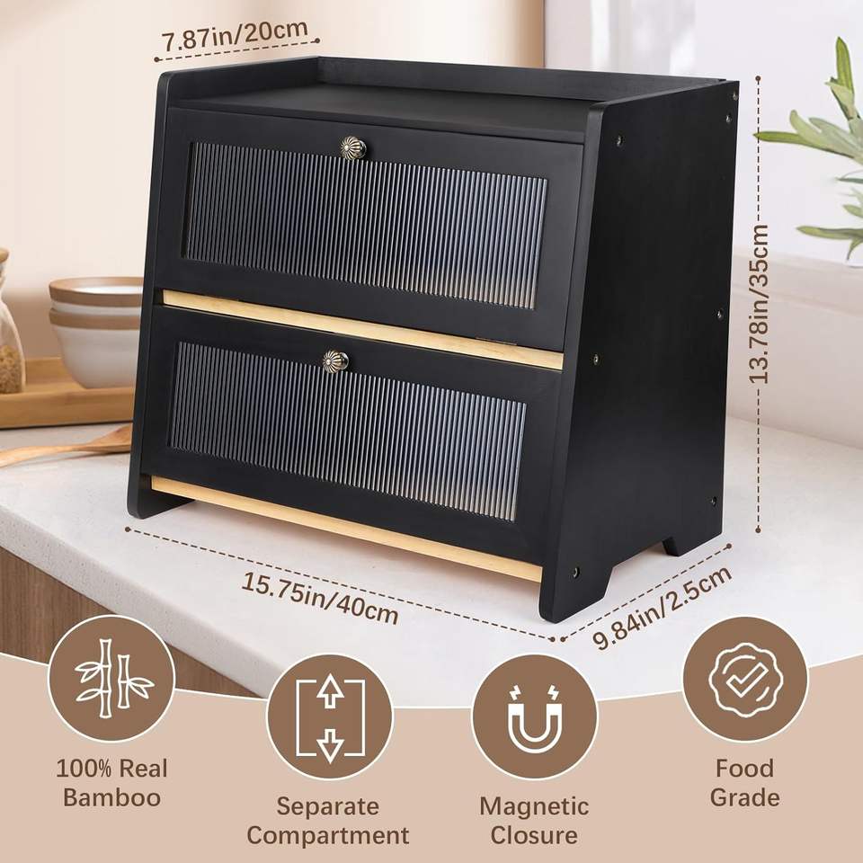 กล่องใส่ขนมปังสีดำสำหรับวางบนเคาน์เตอร์ครัว ใช้จัดระเบียบและตกแต่ง กล่องเก็บของไม้ กล่องใส่ขนมปัง ของขวัญขึ้นบ้านใหม่