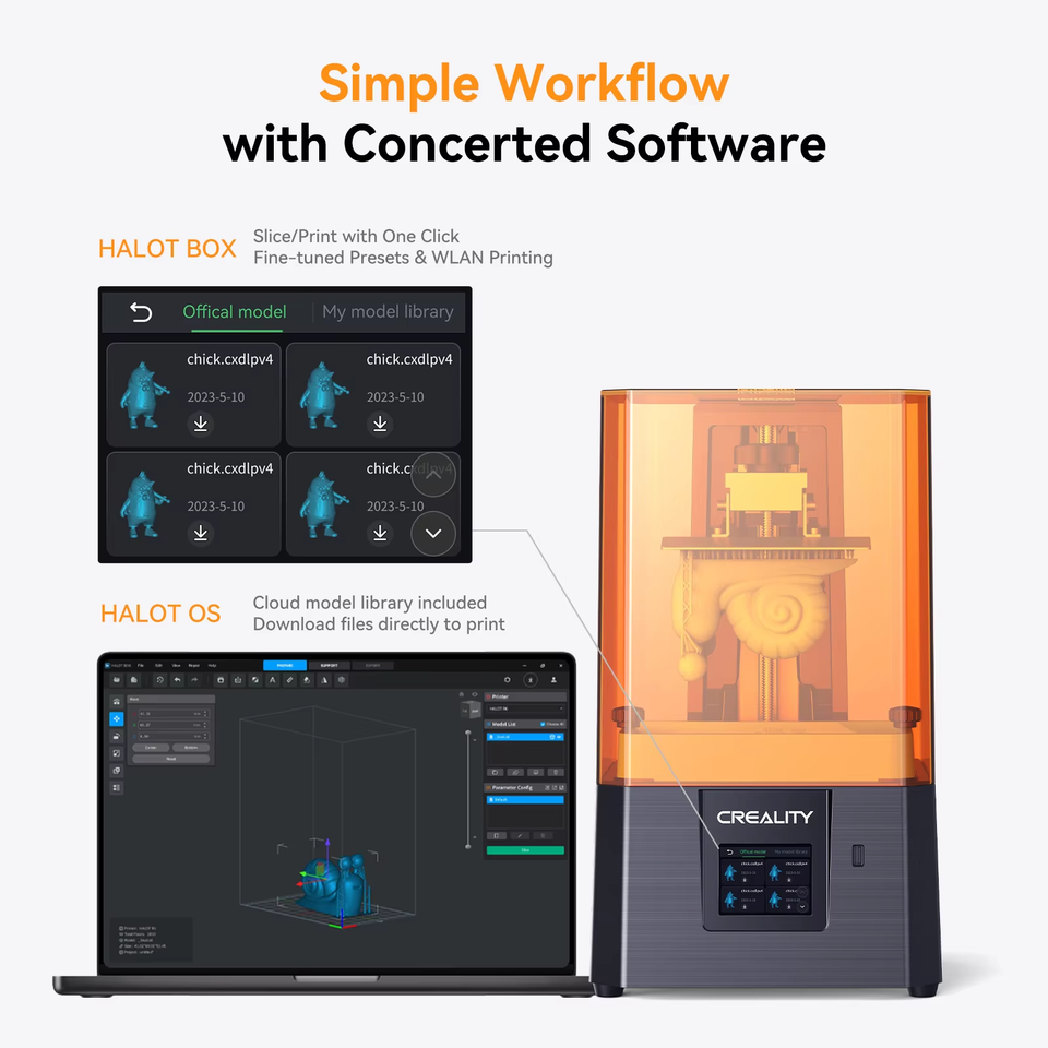 เครื่องพิมพ์เรซิ่น 3 มิติ Crealit HALOT R6 ใช้งานง่าย ความละเอียด 2K สำหรับผู้เริ่มต้น ให้ความสม่ำเสมอของน้ำหนักที่ดี ระบบอัตโนมัติ 90% ขนาด 130.56*82.62*160 มม.