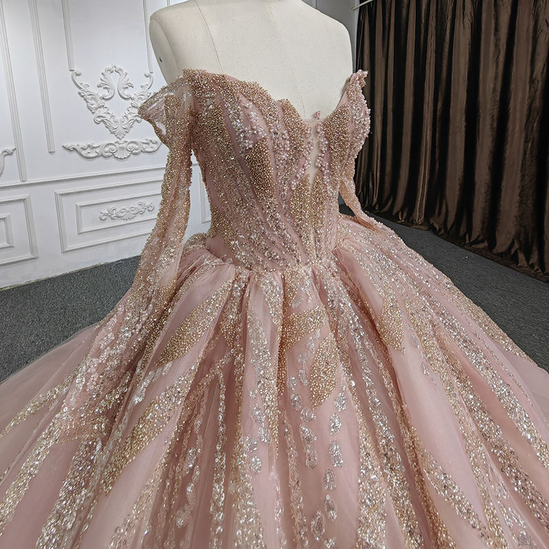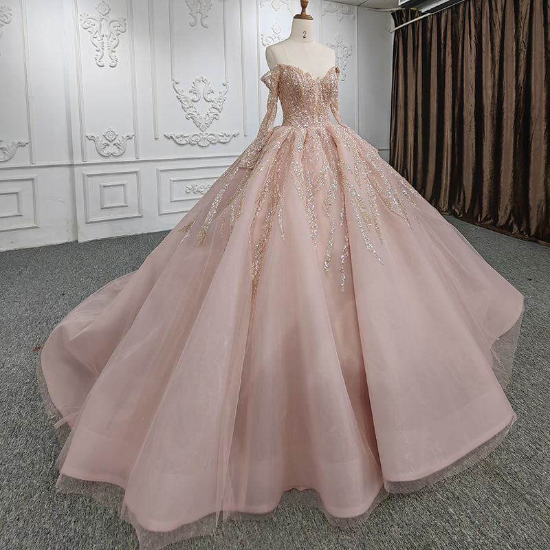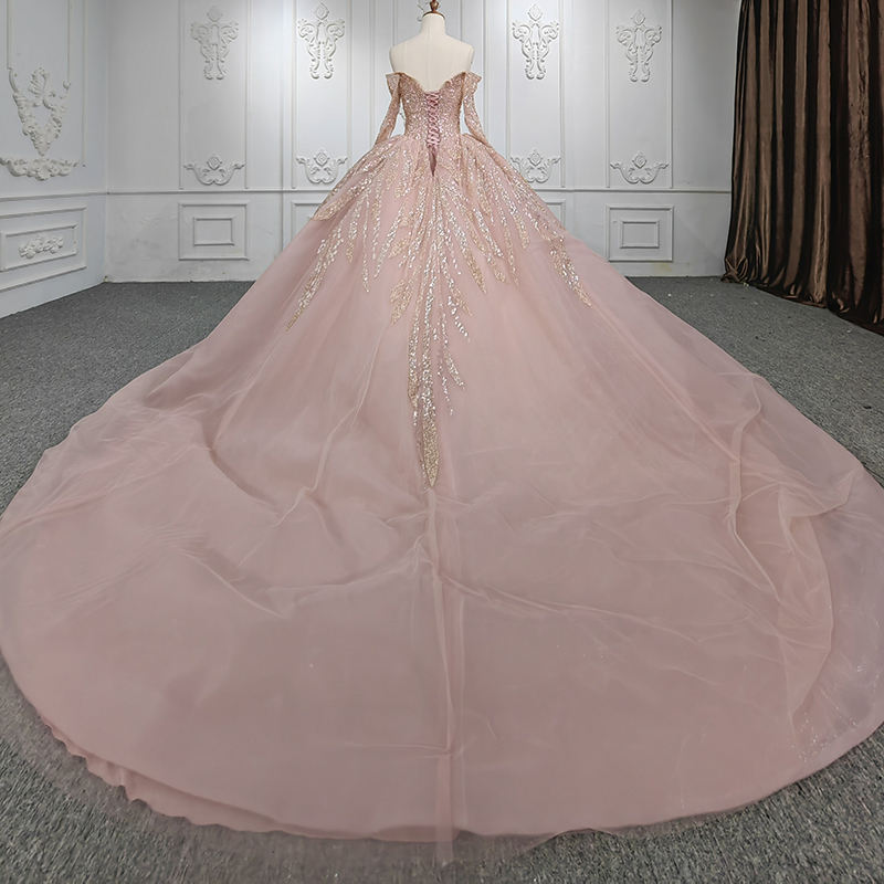 For DY9952 Shoulder Sequined Beading Appliques Natural Chapel Train Ball Gown Floor-Length Plus Size Evening Dress