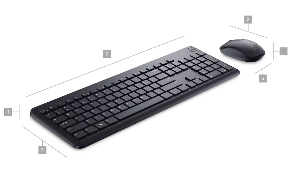 มิติ:แป้นพิมพ์: 17.5ใน x 4.8ใน x 1ในเมาส์: 2.3ใน x 4.1ใน X 1.5นิ้ว