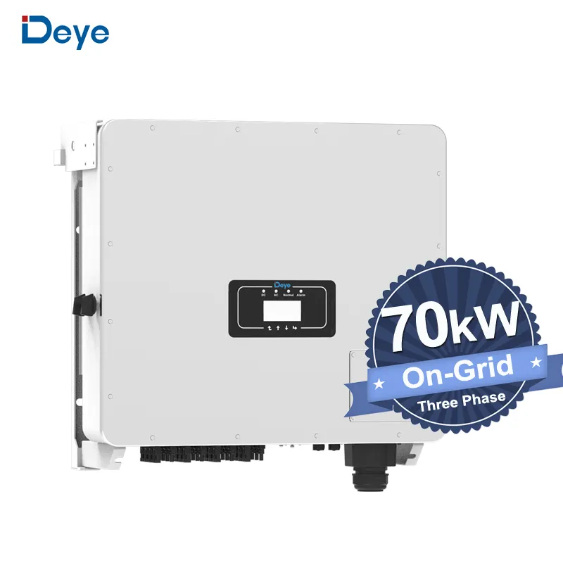 สำหรับ deye 70kW อินเวอร์เตอร์พลังงานแสงอาทิตย์แบบออนกริดได้รับการรับรองจากสหภาพยุโรปสำหรับโรงงานเครื่องจักรกลหนักและฟาร์มพลังงานแสงอาทิตย์ SUN-70K-G04P3-EU-AM4สาม IP