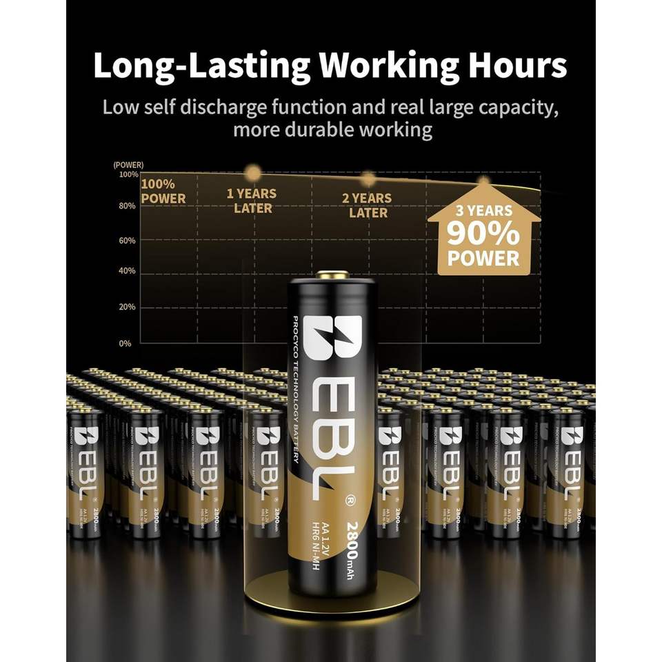 แบตเตอรี่ชาร์จได้สำหรับ ebl GOLD Pro 8ก้อน1.2V 2800mAh ความจุสูง NiMH แบตเตอรี่ชาร์จล่วงหน้า600mAh