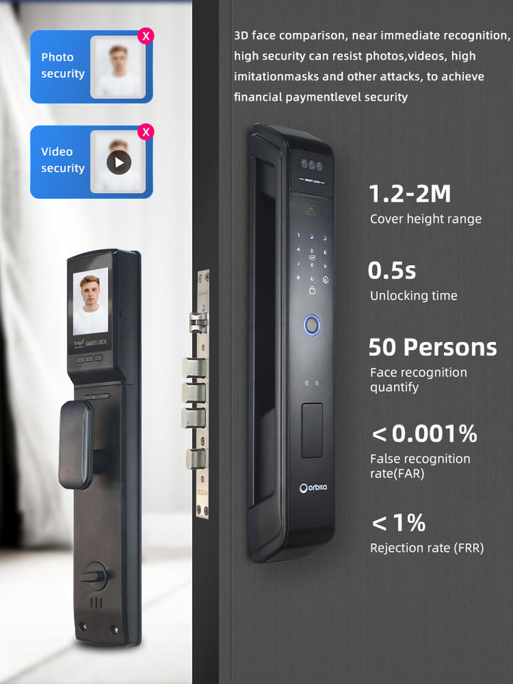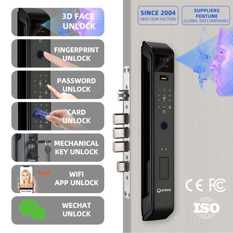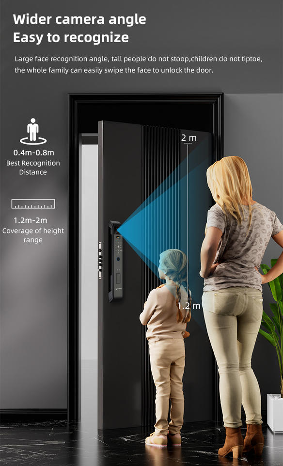 สำหรับ ECO-243 สมาร์ทล็อคประตู ระบบสแกนลายนิ้วมือ รหัสผ่าน กุญแจ แอป Tuya สำหรับการจดจำใบหน้า ความปลอดภัยสูง สำหรับใช้ในโรงแรมและที่บ้าน