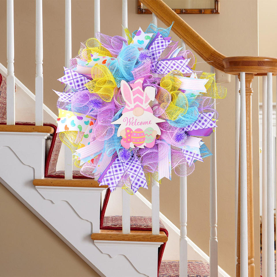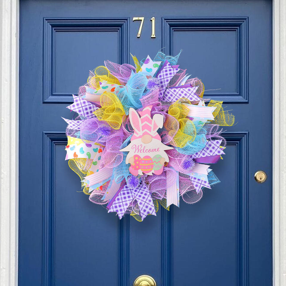 พวงหรีดกระต่ายแคระสำหรับเทศกาลอีสเตอร์ ทำจากพลาสติก โพลีเอสเตอร์ ผ้า การ์ด สำหรับแขวนประตู ตกแต่งวันหยุด ครอบครัว วงแหวนหวายตาข่าย ต้อนรับแขก