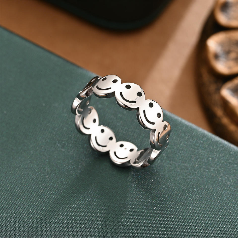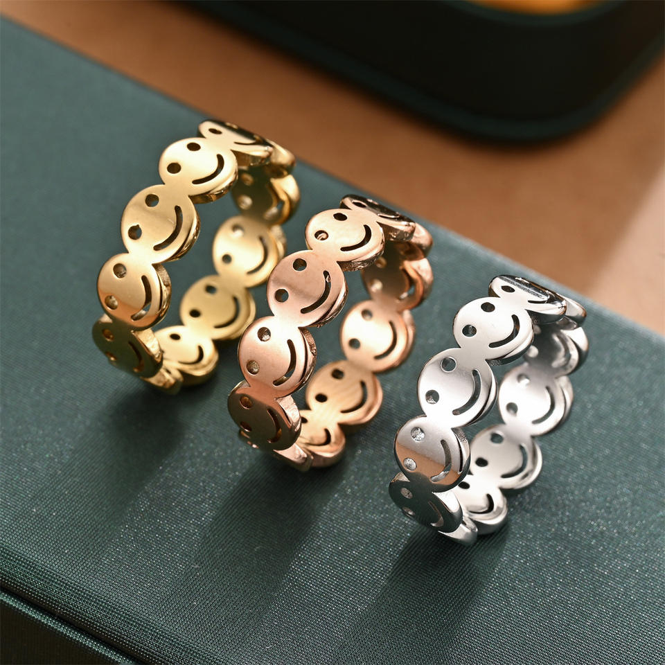 แหวนคู่รัก สแตนเลสสตีล ชุบทอง 18K ลายอิโมจิ สำหรับคู่รัก เพื่อน ของขวัญแต่งงาน หมั้น จับคู่