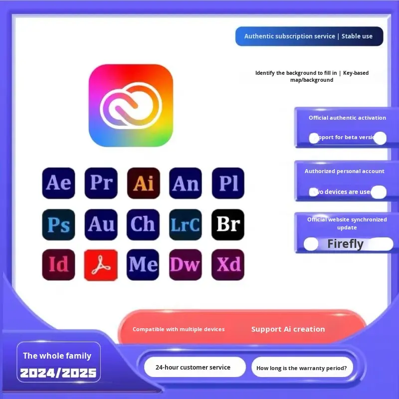 สำหรับชุดครอบครัว Creative Suite เติมเต็ม PS 2025 ซอฟต์แวร์แท้ พร้อมการเปิดใช้งาน Lightroom/Photoshop จีน กราฟิกและมัลติมีเดีย