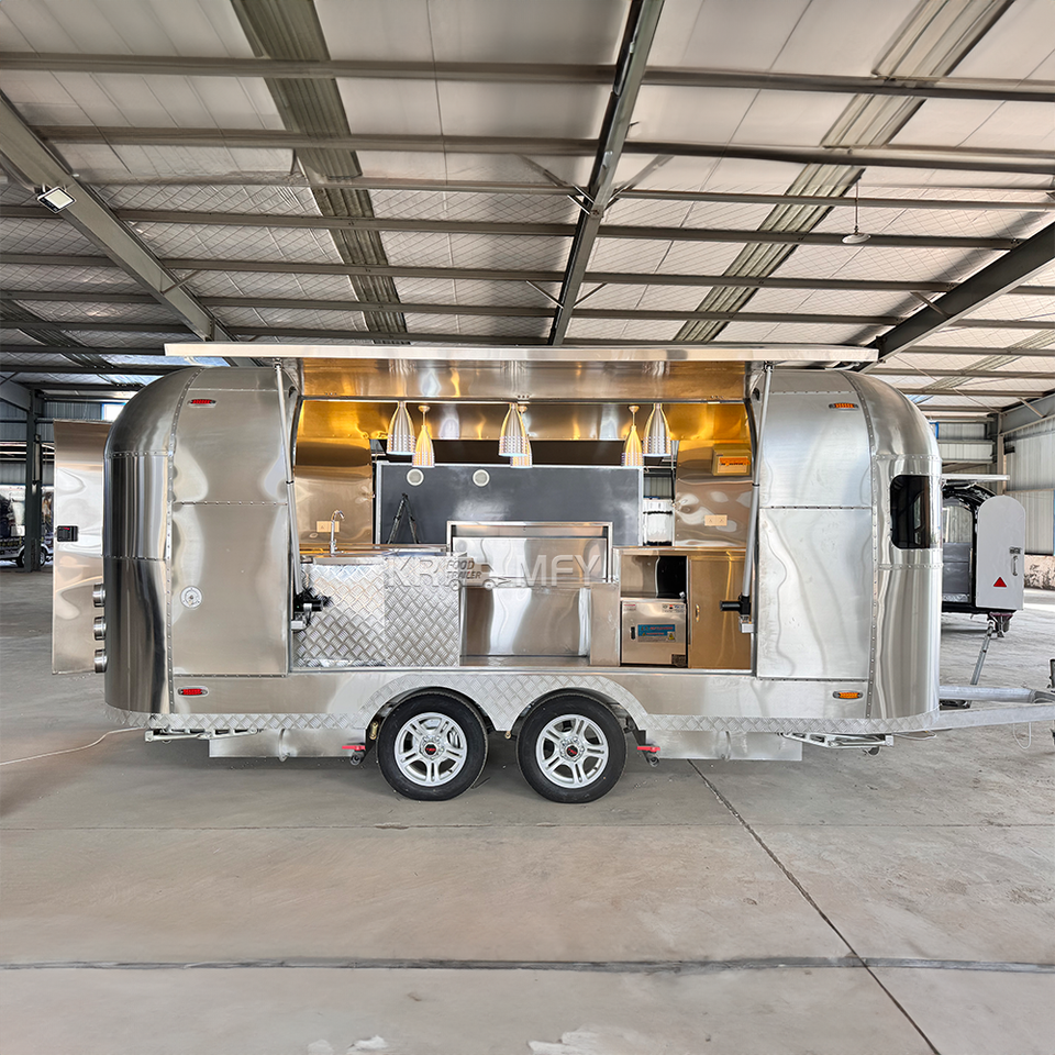 รถเข็นขายอาหารเคลื่อนที่แบบเร็ว ขายดี รถพ่วงขายอาหารแบบกำหนดเองได้ ผลิตจากเหล็กกล้า