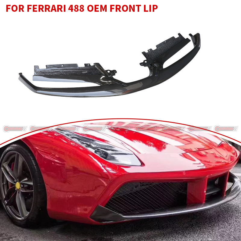 ดิฟฟิวเซอร์กันชนหน้าคาร์บอนไฟเบอร์แท้ สำหรับเฟอร์รารี่ 488 รุ่น OEM สไตล์คาร์บอนแห้ง อะไหล่ตกแต่งตัวถังรถยนต์อื่นๆ