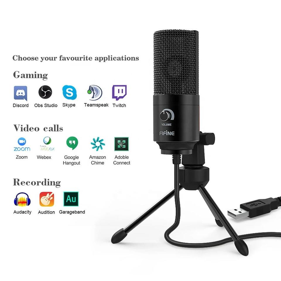 สำหรับ fifine USB คอนเดนเซอร์ไมโครโฟนสตรีมมิ่งไมโครโฟนตั้งโต๊ะพร้อมขาตั้งกล้องโลหะสำหรับพีซี